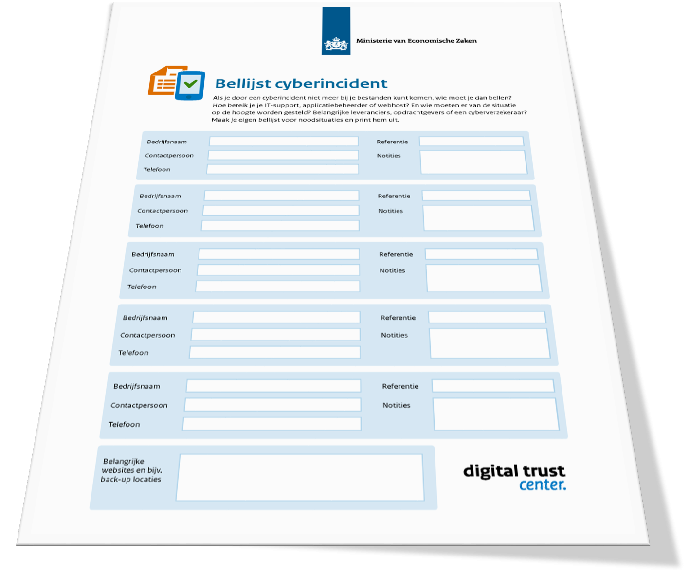 Heb je voor je bedrijf nog niet veel oog gehad voor je cyberveiligheid? Besteed dan vandaag 5 minuten tijd in de gratis Cyberveilig Check voor zzp en mkb. Download je eigen actielijst en bouw je cyberweerbaarheid gefaseerd uit.
