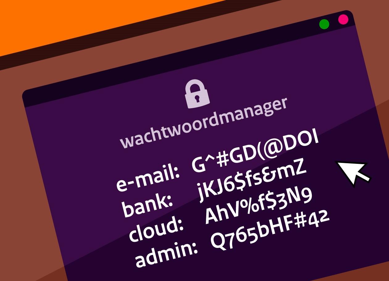 Maak voor verschillende diensten verschillende wachtwoorden aan. Zo voorkom je dat als je wachtwoord bekend wordt, al je accounts opeens toegankelijk zijn. Een wachtwoordmanager kan je wachtwoorden veilig en centraal voor je beheren. Veel wachtwoordmanagers genereren zelf sterke wachtwoorden voor je. Handig, dan hoef je ze zelf niet te bedenken én onthouden.