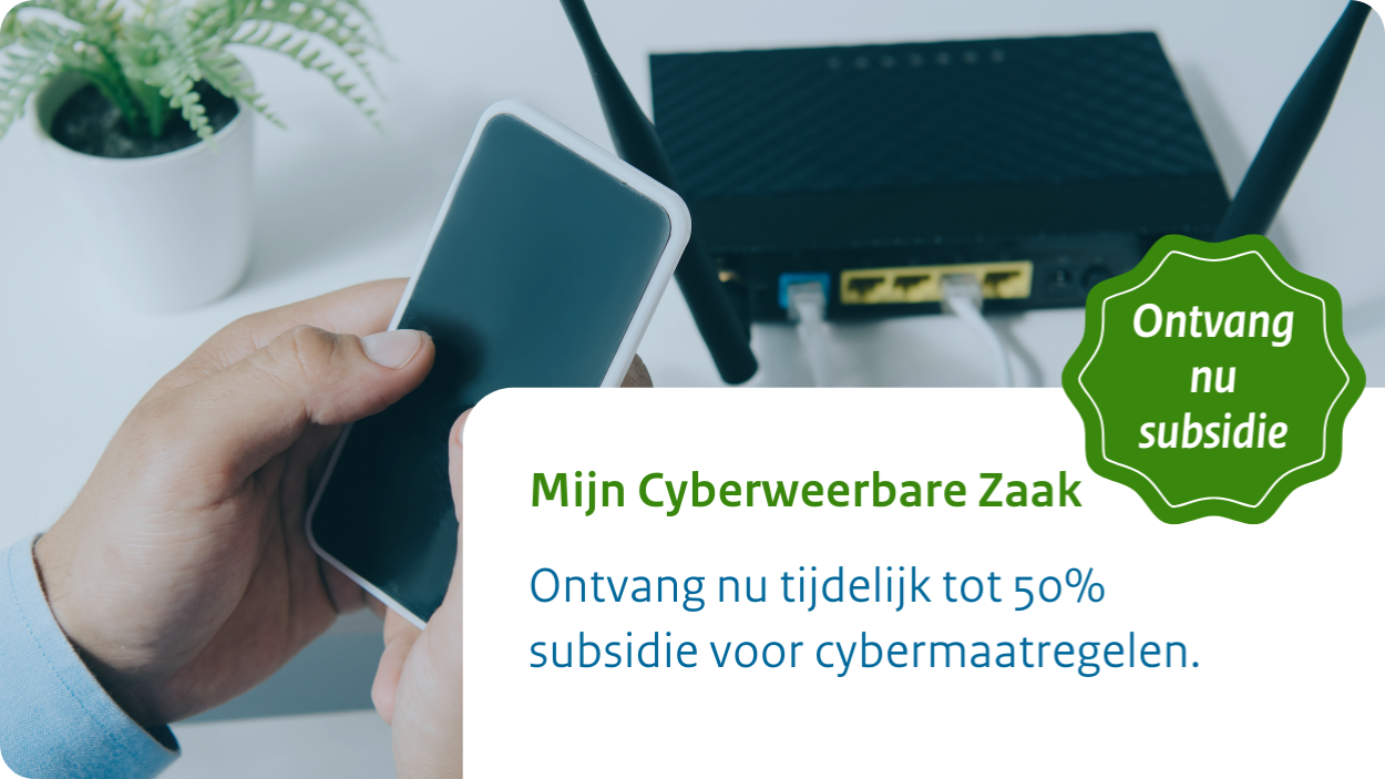Profiteer tijdelijk van de subsidieregeling Mijn Cyberweerbare Zaak en ontvang 50% subsidie op veilige netwerktoegang en andere belangrijke cyberweerbaarheidsmaatregelen.