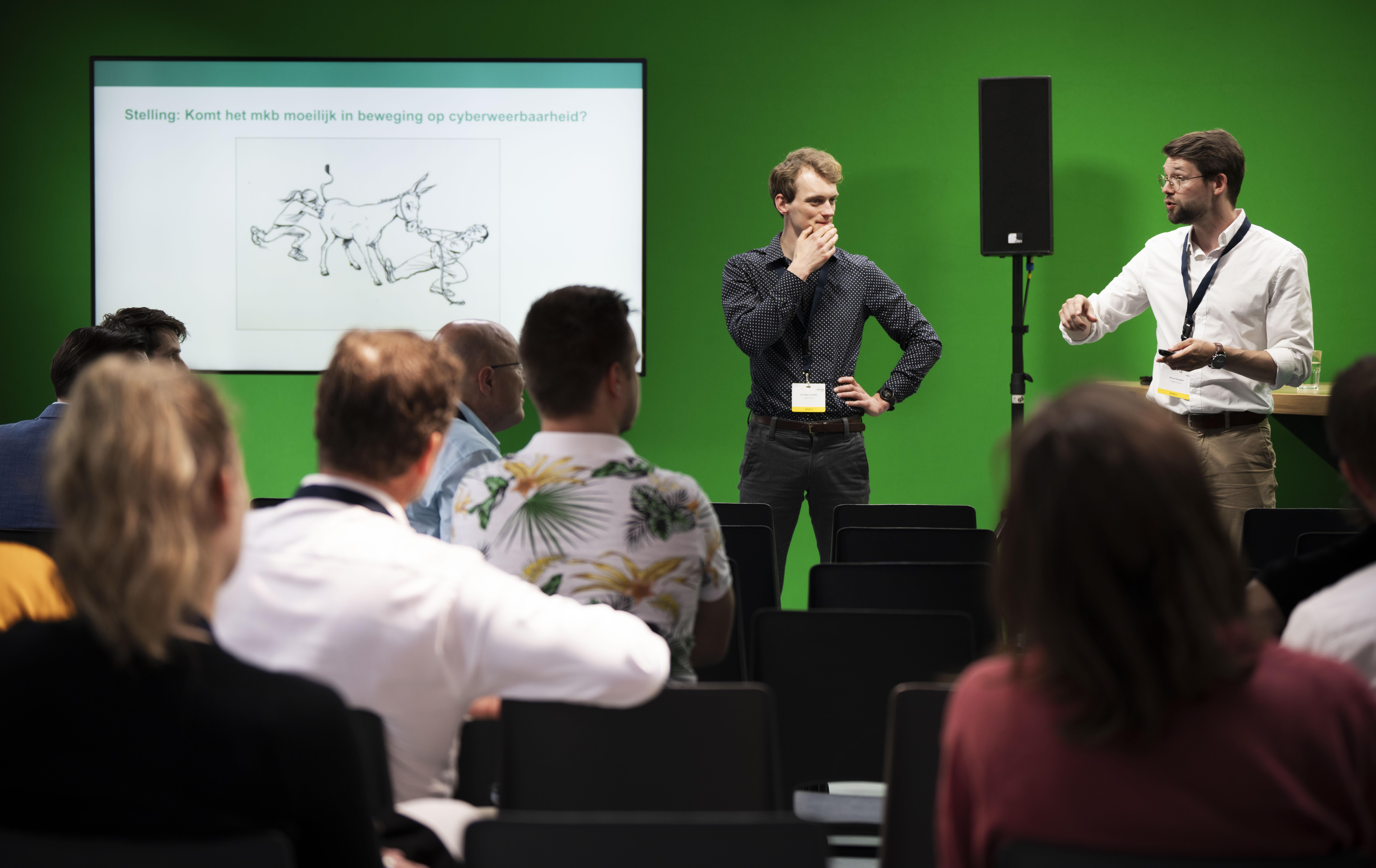 Bruno Verweijen en Jan-Peter Soenveld van Hogeschool Saxion gaven een inkijk in hun onderzoek onder cyberweerbaarheid bij midden- en kleinbedrijven. Er wordt gezegd dat de cyberweerbaarheid van het mkb nog onvoldoende is, en het lijkt dat het mkb moeilijk in beweging komt met het verbeteren van hun cyberweerbaarheid. Maar wat zijn dan precies de belemmeringen die mkb-ers ervaren? En wat zijn de ondersteuningsbehoeften die zij hebben? Bruno en Jan-Peter bespraken de onderzoekresultaten en onderzochten of het publiek zich hierin herkende.